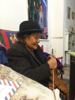 Ich... als ich ungefähr 15 Jahre alt war, mit meiner Schwester. Mit meiner Schwester war ich zufrieden, glücklich, als ich erst 15 Jahre alt war. In Cajabamba. Ich habe mit meiner Schwester zusammen gelebt. Sie hat mit erzogen, seit dem ich drei Jahre alt war. Ich kenne meine Mama nicht. Wir haben keine Fotos von ihr gemacht, nichts. Ich kenne sie nicht. Meine Schwester hat gearbeitet. Manchmal hat sie mich mitgenommen, ich war halt sehr klein. Sie konnte mich nicht alleine im Haus lassen. Meine Schwester war 15 Jahre alt als meine Mama gestorben ist. Ich war 3. Sie hat mit danach aufgezogen. Mein Bruder, der gestorben ist, hat auch mitgeholfen mich aufzuziehen. Mein Bruder war so ungefähr 20 Jahre alt. Älter als meine Schwester. Er ist in die Felder gegangen zum arbeiten, in die Berge. Er hat mich mitgenommen, getragen. In seinem Poncho hat er mich getragen und einen kleinen Topf hat er mit genommen. Ich erinnere mich, dort hat er gekochte Kartoffel mitgebracht, damit wir zwei sie essen. (...) Wir wurden sehr früh Waisenkinder. Mein Papa kenne ich nicht, hijita. Er wird tot sein, so wird wohl es sein. Ich kenne ihn nicht. Meine Mama ist bei der Geburt gestorben. Sie mochte es nicht ins Krankenhaus zu gehen. Genau dort, im Haus bei der Geburt.